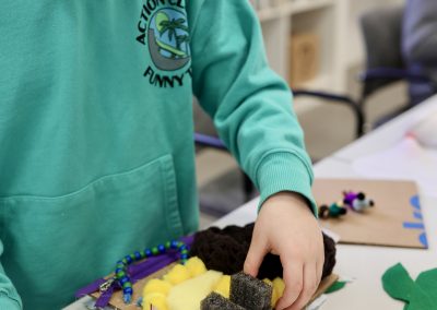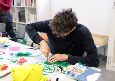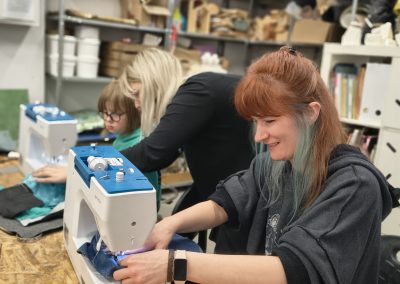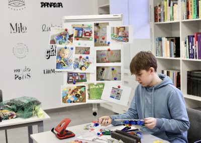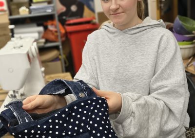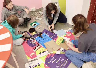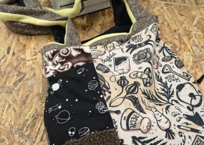 W trakcie ferii będziemy zajmować się aktualnym tematem nadmiaru tkanin i ich recyklingu. Uczestnicy wykorzystają stare, przyniesione z domu ubrania, przerabiając je w inspirowane patchworkami torby na zakupy, piórniki, czy poduchy, z których będzie można jeszcze długo korzystać w domu czy szkole. Dzięki temu dzieci i młodzież będą mieli okazję poznać obsługę maszyn do szycia. Faktury tkanin posłużą również do tworzenia książki sensorycznej.