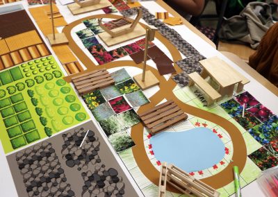 Na zajęciach uczniowie poznają takie pojęcia jak: architektura krajobrazu, ogród sensoryczny oraz strefy zmysłów – słuchu, dźwięku i węchu. Na dużych planszach zaprojektują własne strefy w ogrodzie, a następnie wykonają wspólnie kilkumetrową ścieżkę sensoryczną.