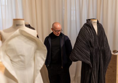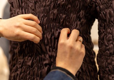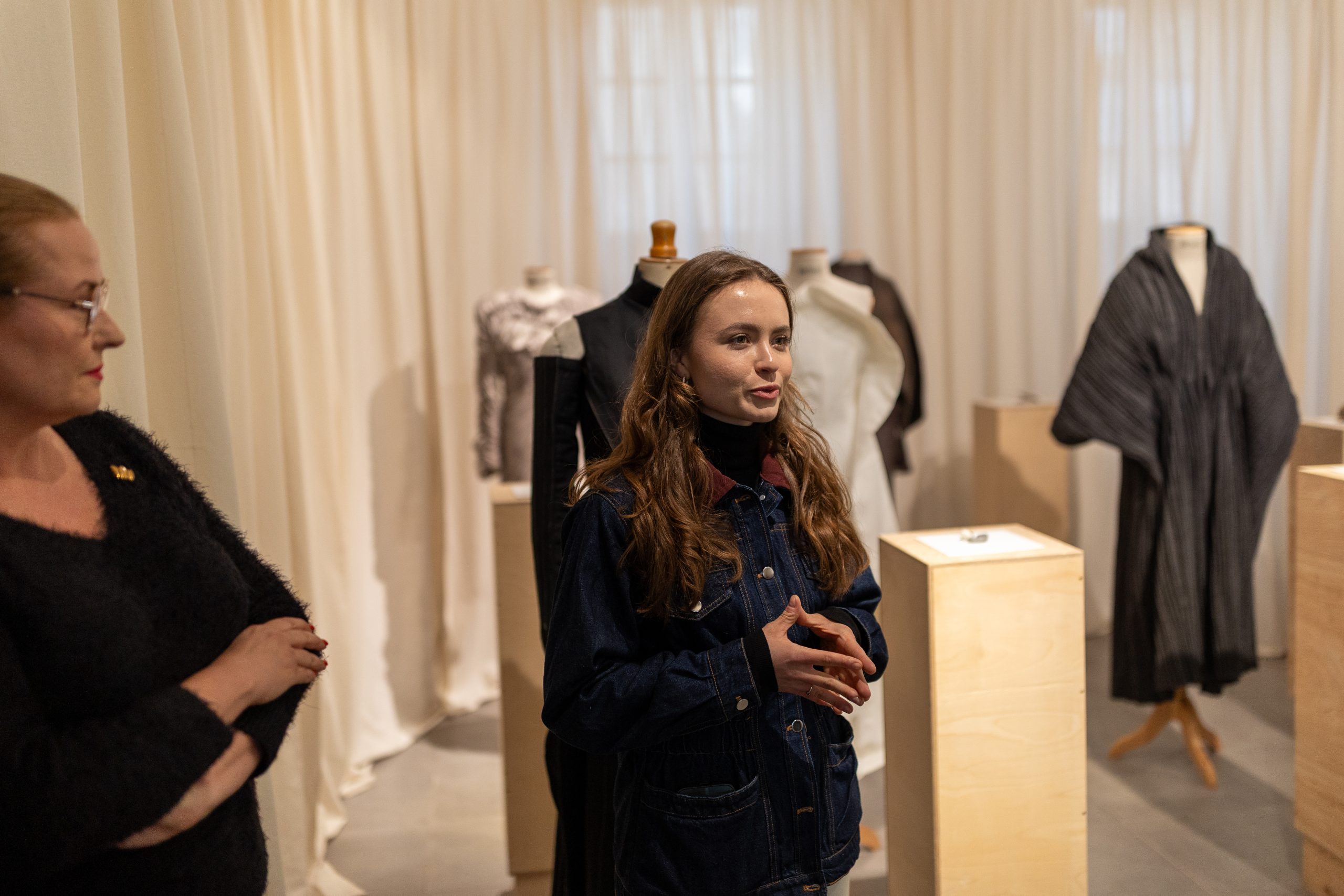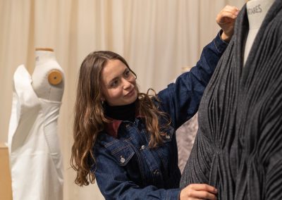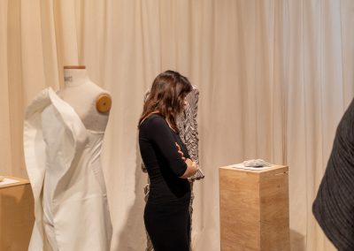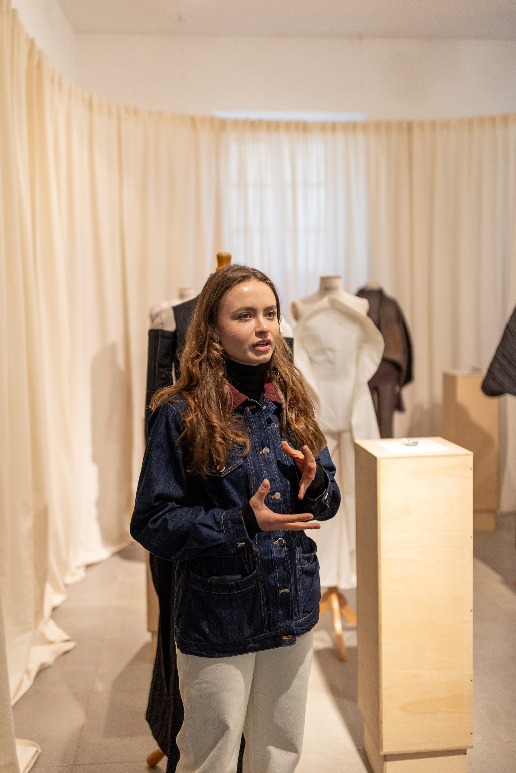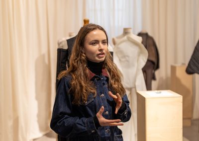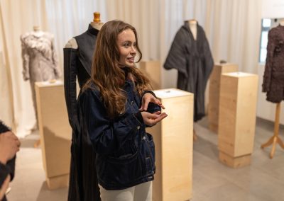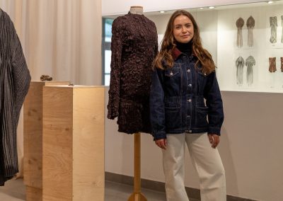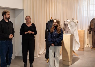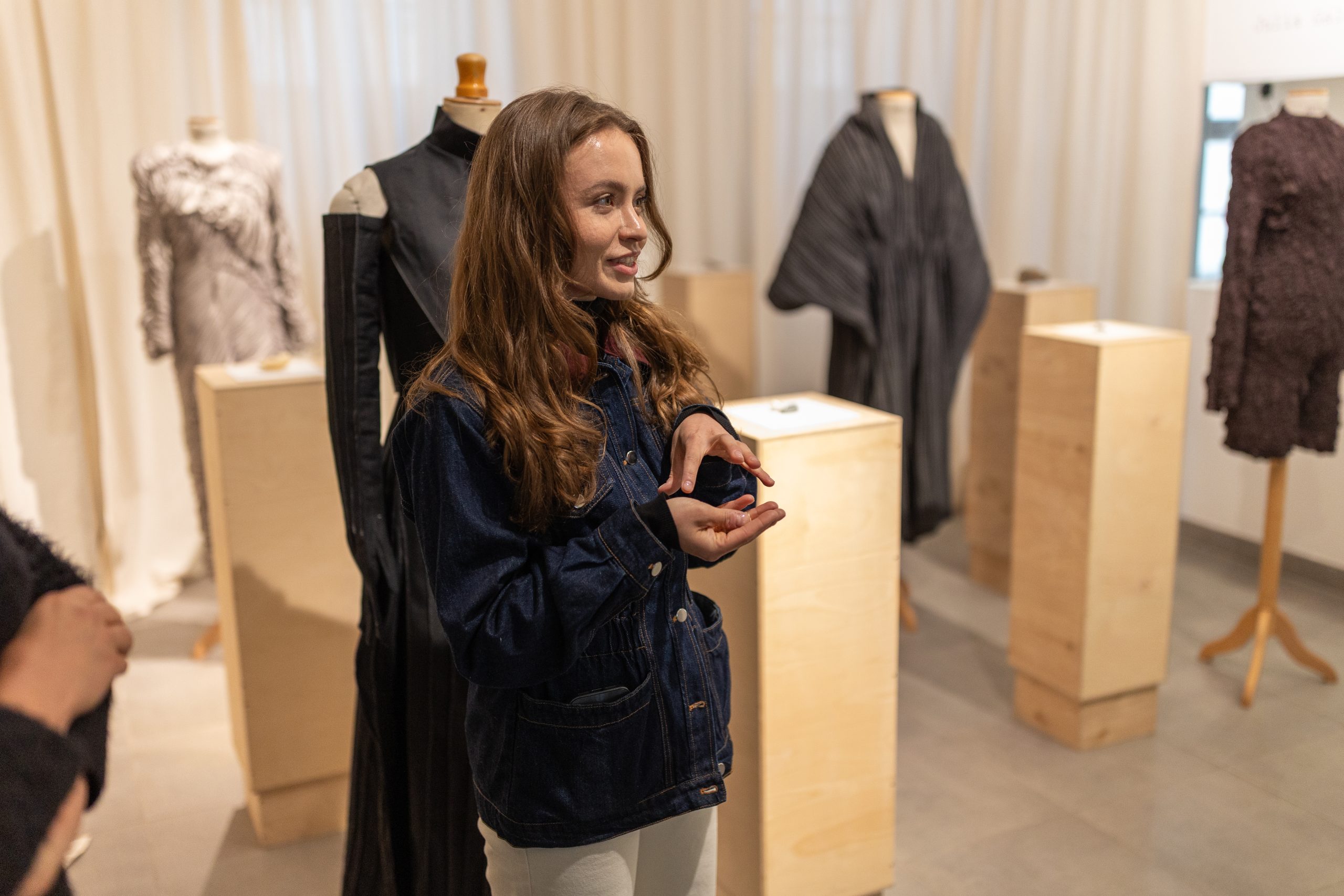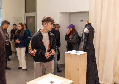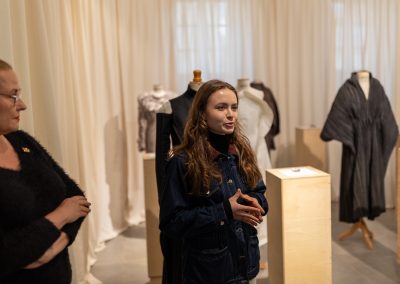Julia Galewicz – Projektantka odzieży, tekstyliów i obiektów. Ukończyła Akademię Sztuki w Szczecinie, kierunek Projektowanie Ubioru. W swojej pracy koncentruje się na eksperymentowaniu i głębokiej eksploracji, wykorzystując oryginalne techniki. Jej obszary zainteresowań to „przestrzenie pomiędzy”, mistycyzm i natura, które bada intuicyjnie, rozumiejąc, że opowieść i jej charakter są równie ważne jak ostateczny efekt.