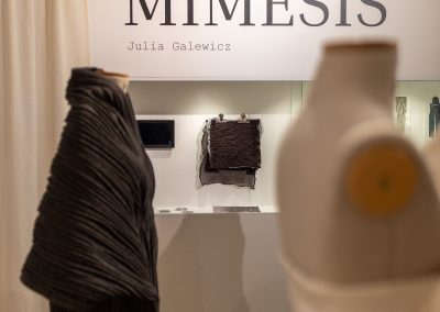 Kolekcja „Mimesis” stanowi analizę relacji człowieka z naturą. Praca jest interpretacją charakterystycznych cech wyselekcjonowanych elementów natury, które budują bibliotekę inspiracji dla zaprojektowanych form, faktur i barw.