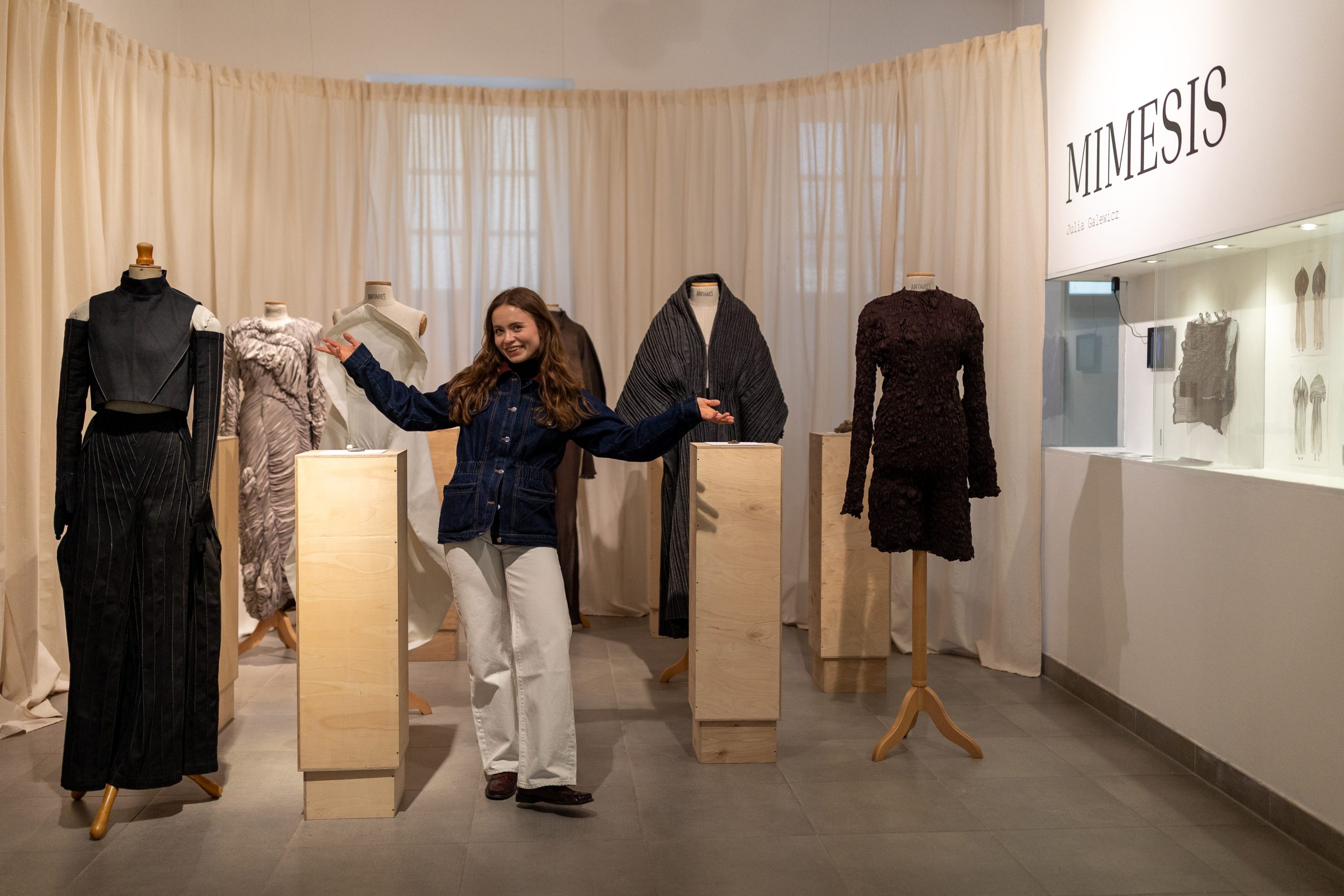 Zapraszamy na wernisaż wystawy “Mimesis” autorstwa Julii Galewicz, który odbędzie się w czwartek 15. maja o godzinie 18.00 w Galerii na Piętrze. Wystawa prezentuje kolekcję dyplomową, która została wyróżniona nagrodą Dyrektorki Wzgórza Zamkowego na zeszłorocznej gali Off Fashion w Kieleckim Centrum Kultury.